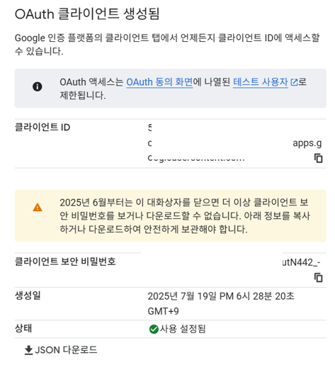이전에 구글 클라우드에서 구글드라이브 API를 허용해주구요.
