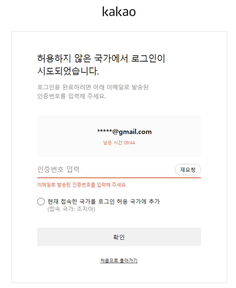 즉 평소에 로그인하던 국가가 아니라 해외에서 접속할 경우 이상하다고 판단하고 이를 차단하는 것입니다.