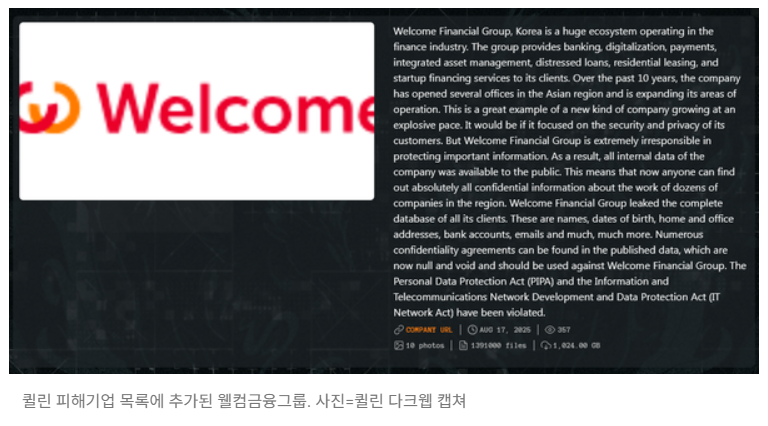 이에 대해 웰컴금융그룹 측은 그룹 내 대부업체가 공격받아 내부 정보가 일부 유출된 사실은 인정하면서도, 해커들이 공개한 자료는 고객 정보가 아닌 회의 자료나 품의 서류 등이라고 설명했습니다.