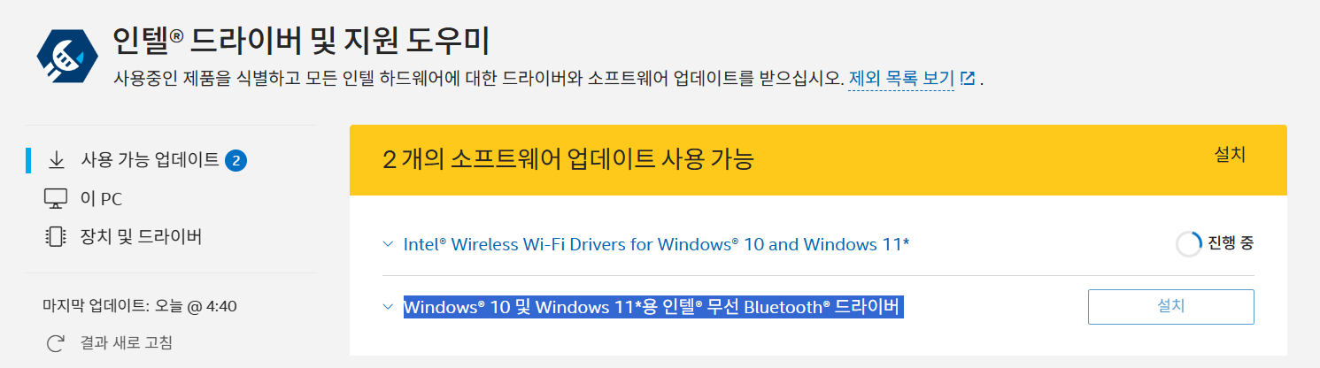 인텔® 드라이버 및 지원 도우미