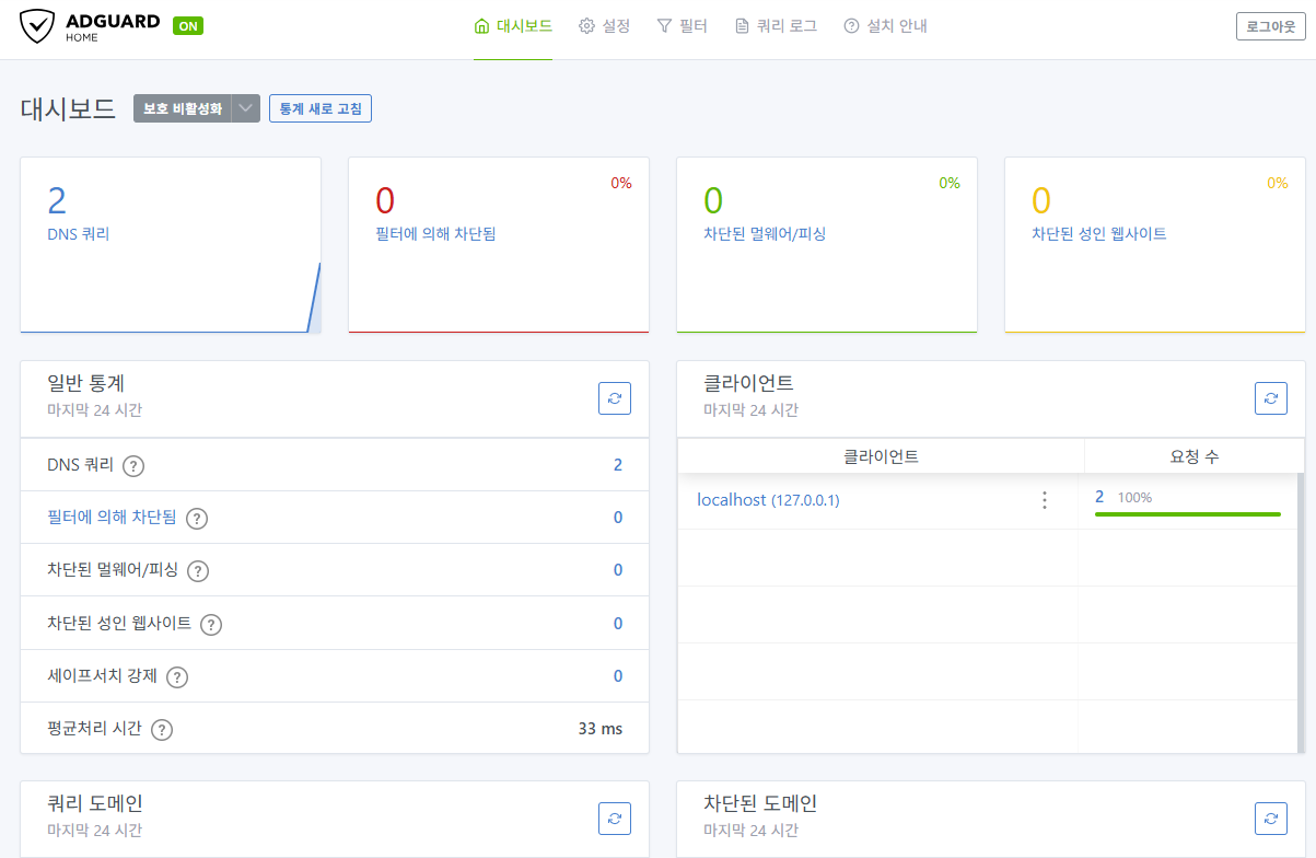 이렇게 간단하게 Adguard home을 설치했습니다.