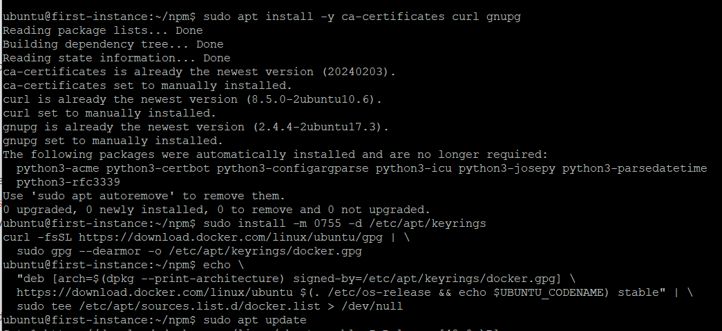 sudo apt install -y docker-ce docker-ce-cli containerd.io docker-buildx-plugin docker-compose-plugin