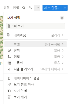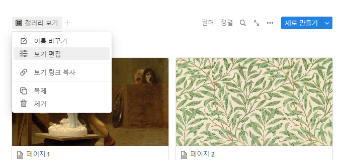 이렇게 만들어진 갤러리에서 상단의 갤러리 보기 - 보기 편집을 누릅니다.
