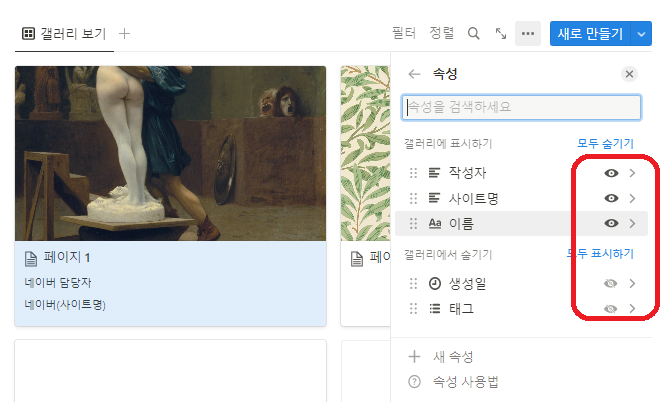 갤러리에 표시하거나 또는 감추기를 자유롭게 설정할 수 있습니다.