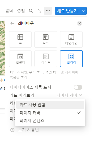 제목을 보여줄지 여부 그리고 카드 미리보기칸은 현재 개별 카드에서 세부내용을 보여줄지