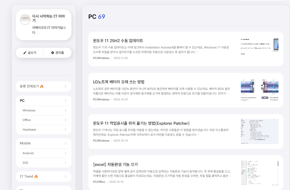 최근 티스토리 스킨이 거의 개발이 안되고 있는데, 기존에는 한눈에 스킨을 이용중이었구요.
