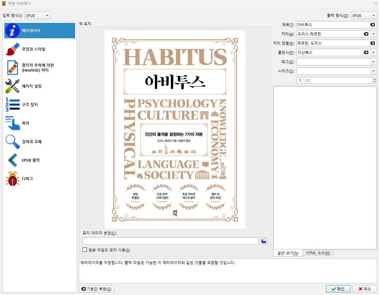 마지막으로 책변환하기를 통해서 epub에서 epub로 변환하면 됩니다.