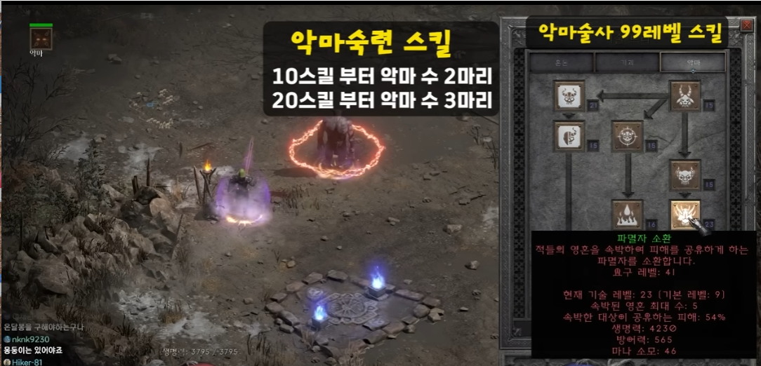 그리고 악마에서는 악마숙련 20스킬부터 악마수 3마리라 20에 맞췄네요.
