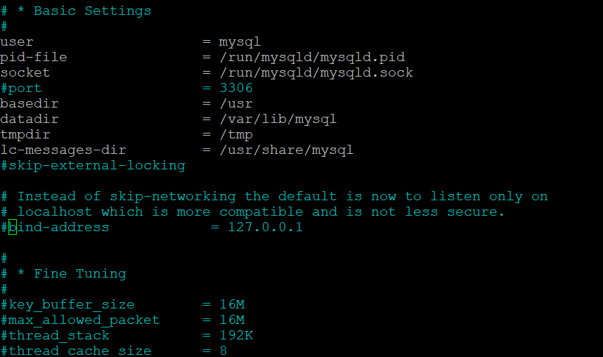 그리고 외부에서 접속하려면 bind-address의 주석을 제거해주셔야 합니다.