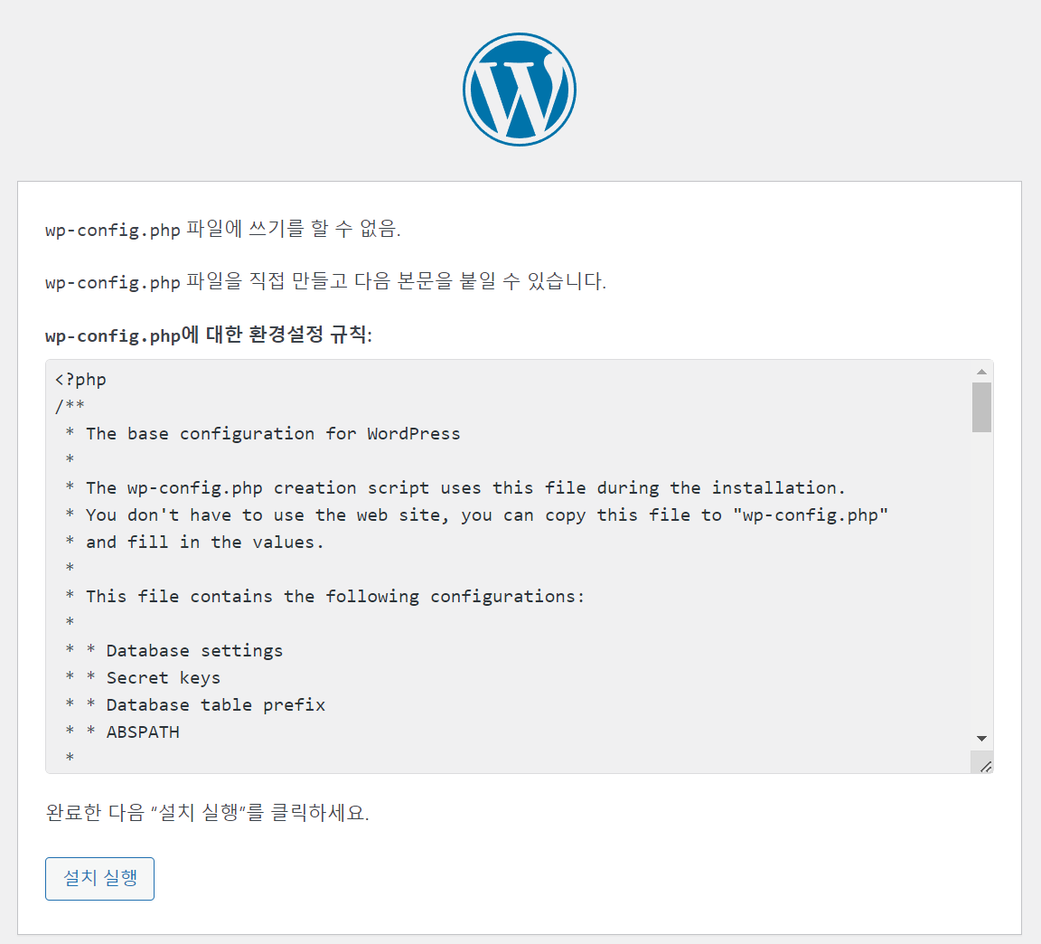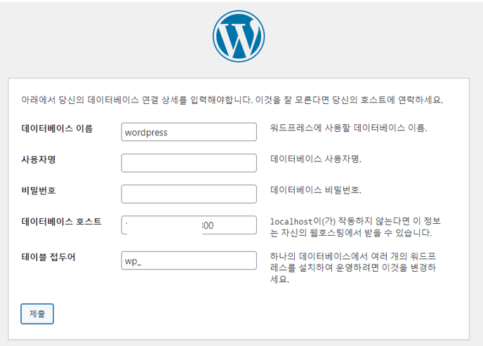 여기까지 와서 설치ip/wordpress누르면 아래처럼 wordpress 설치 화면이 나옵니다.