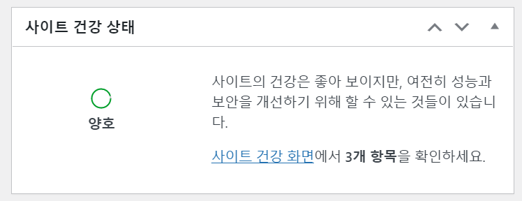 워드프레스를 설치하고 최초 사용하면 아래처럼 사이트 건강화면에 3개 항목이 개선이 필요하다고 뜨는데요.