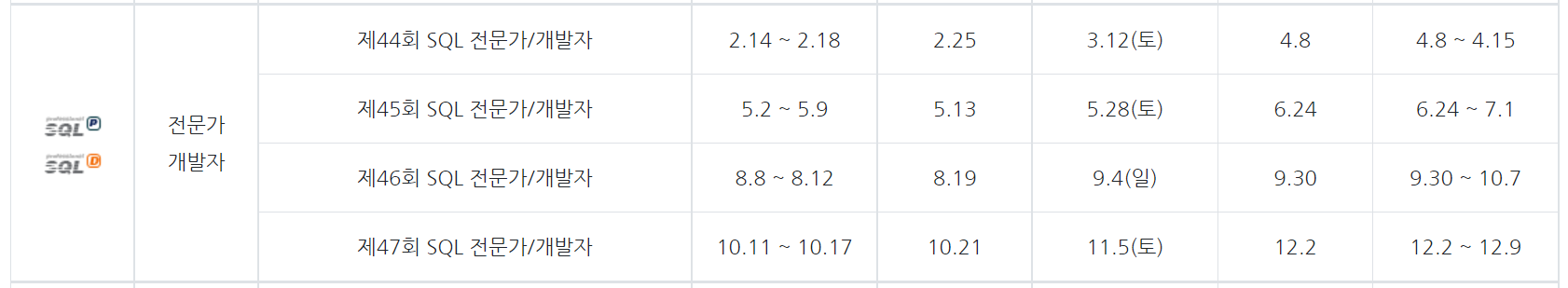 SQLD는 올해 총 4번의 시험이 진행되었구요. 이번 11월 5일에 볼 시험은