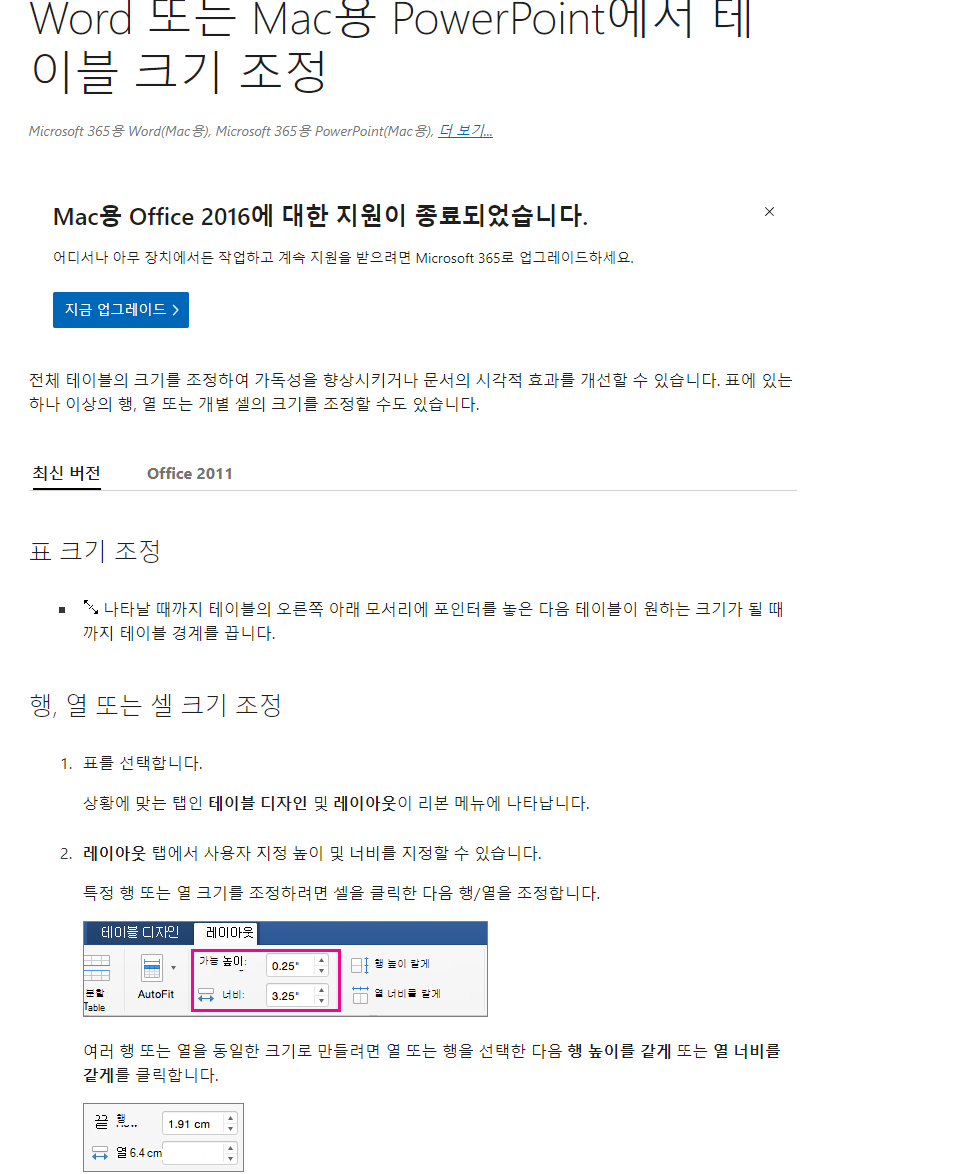 한글과 달리 이런 표 옵션이 다양하지 않다는 점입니다.