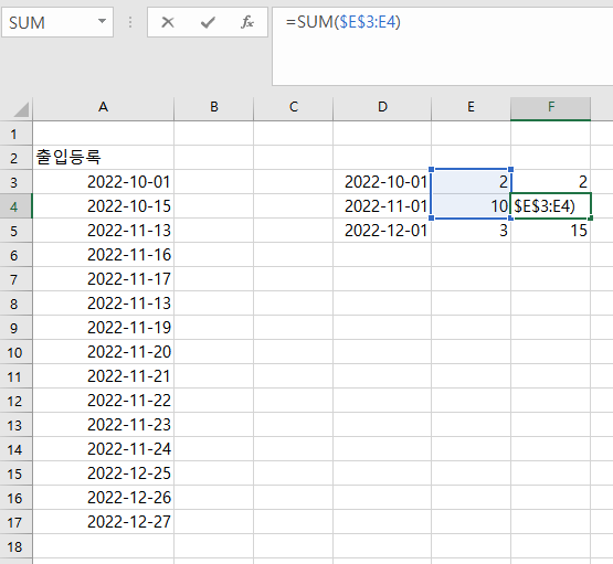 누적 데이터는 정말 간단하게 SUM함수를 활용해서 구할수 있는데요.