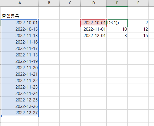 =COUNTIFS(전체범위,">="시작날짜,전체범위,"<"&EDATE(시작날짜,1))