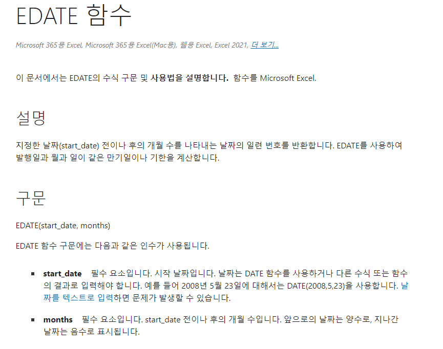 여기에서 추가로 마지막 날짜를 알기 위해서 EDATE함수를 사용하였습니다.