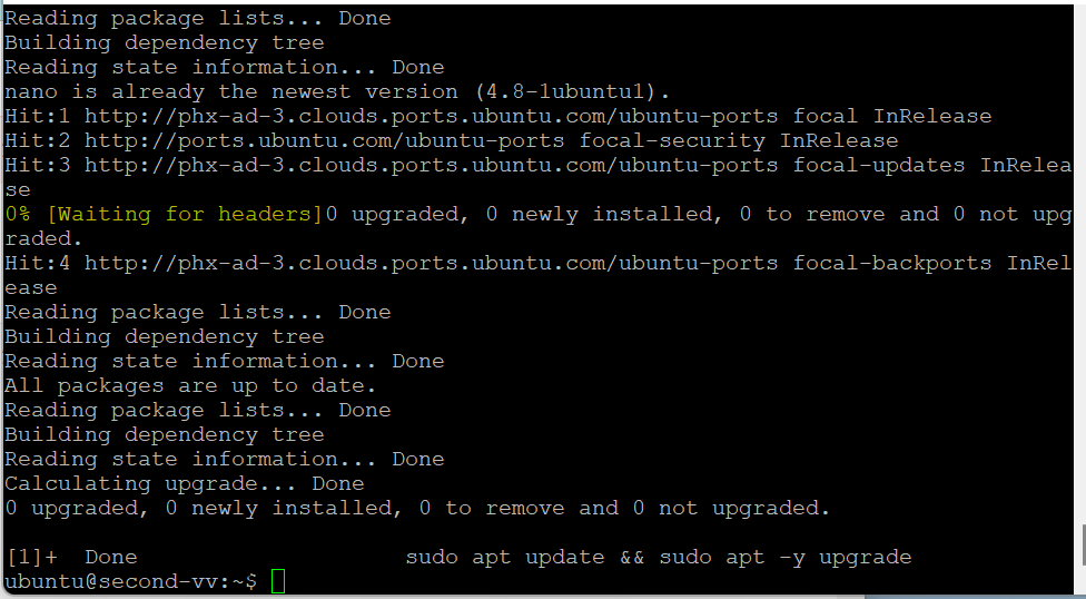 sudo apt update && sudo apt -y upgrade & sudo apt install -y nano