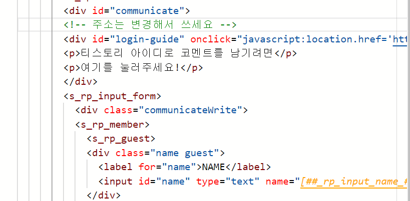해당 코드를 댓글을 남기는 줄 위에 적어주시면 되구요.