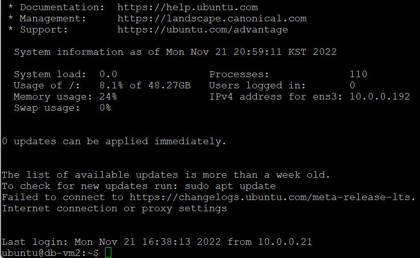 이렇게 하면 정상적으로 서버에 접속한 것을 알 수 있습니다.