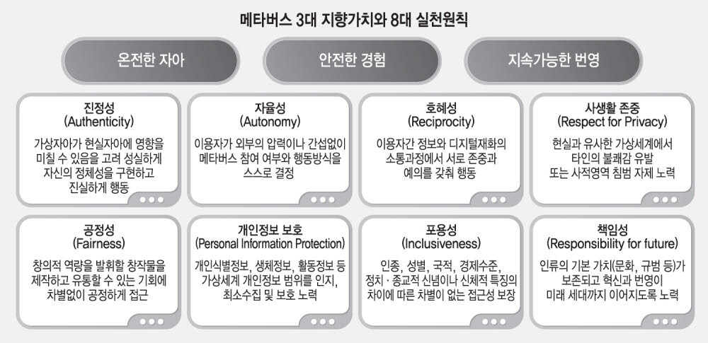 이번 공개된 메타버스 윤리원칙은 메타버스 개발·운영·이용자(창작자) 등 참여자와