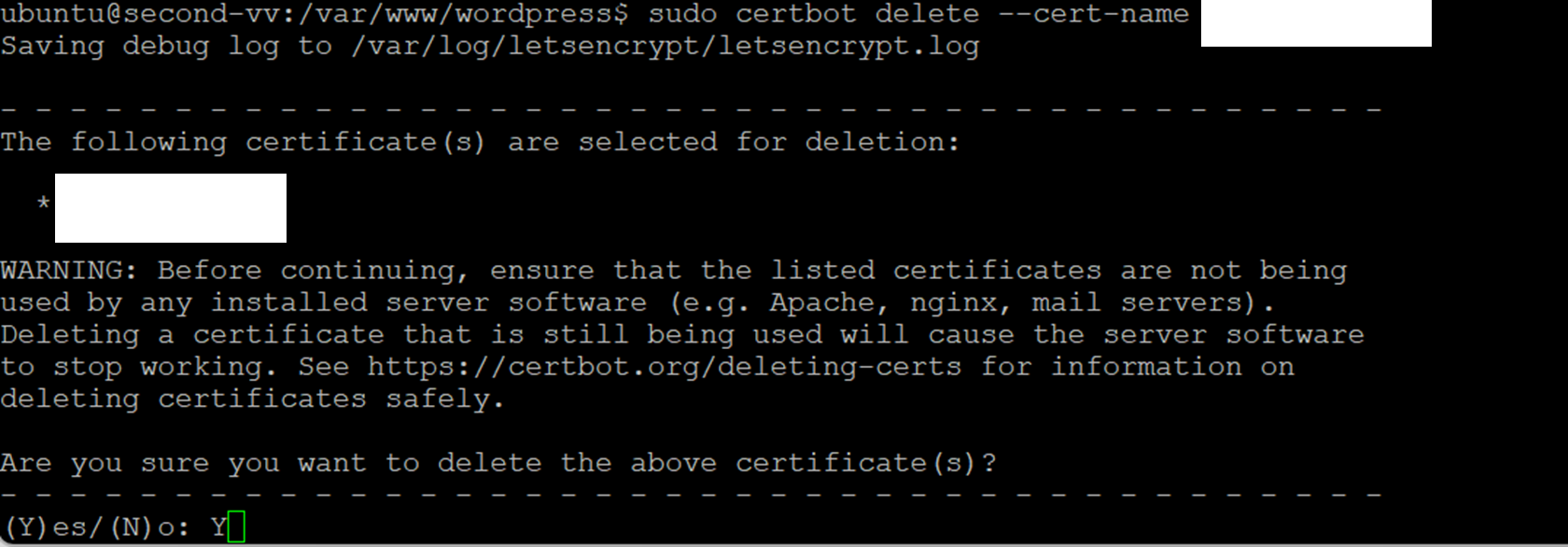 Lets Encrypt 인증서 삭제하기