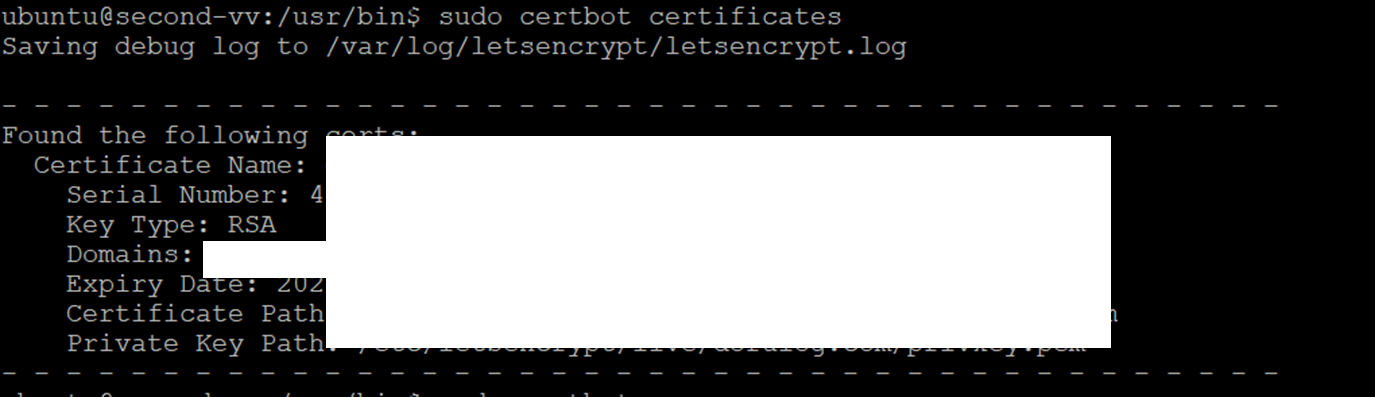 sudo certbot certificates
