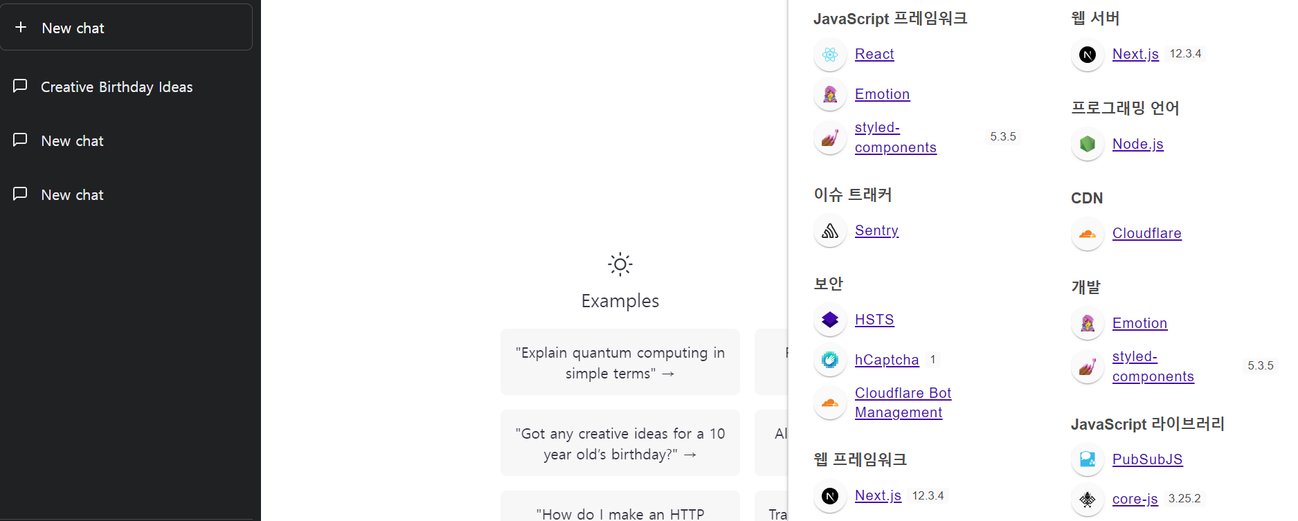 그리고 무엇보다 장안의 화제가 되고 있는 ChatGPT는 Next.js와 React를 통해서 만들어졋네요.