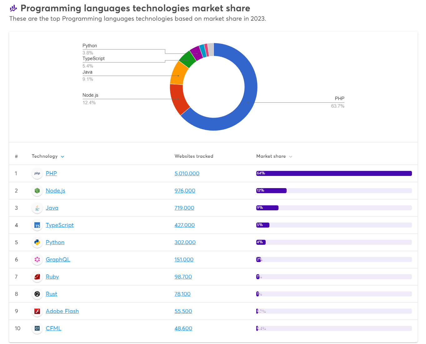 많은 사이트들이 PHP 기반으로 만들어진 것을 확인할 수 있습니다.