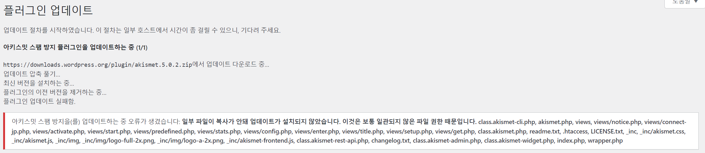리눅스의 경우 파일 권한이 중요한데요. 업데이트를 하기 위한 권한이 없어서 에러가 발생합니다.