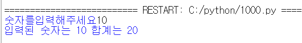 print(f'입력된 숫자는 {a} 합계는 {a+b}')