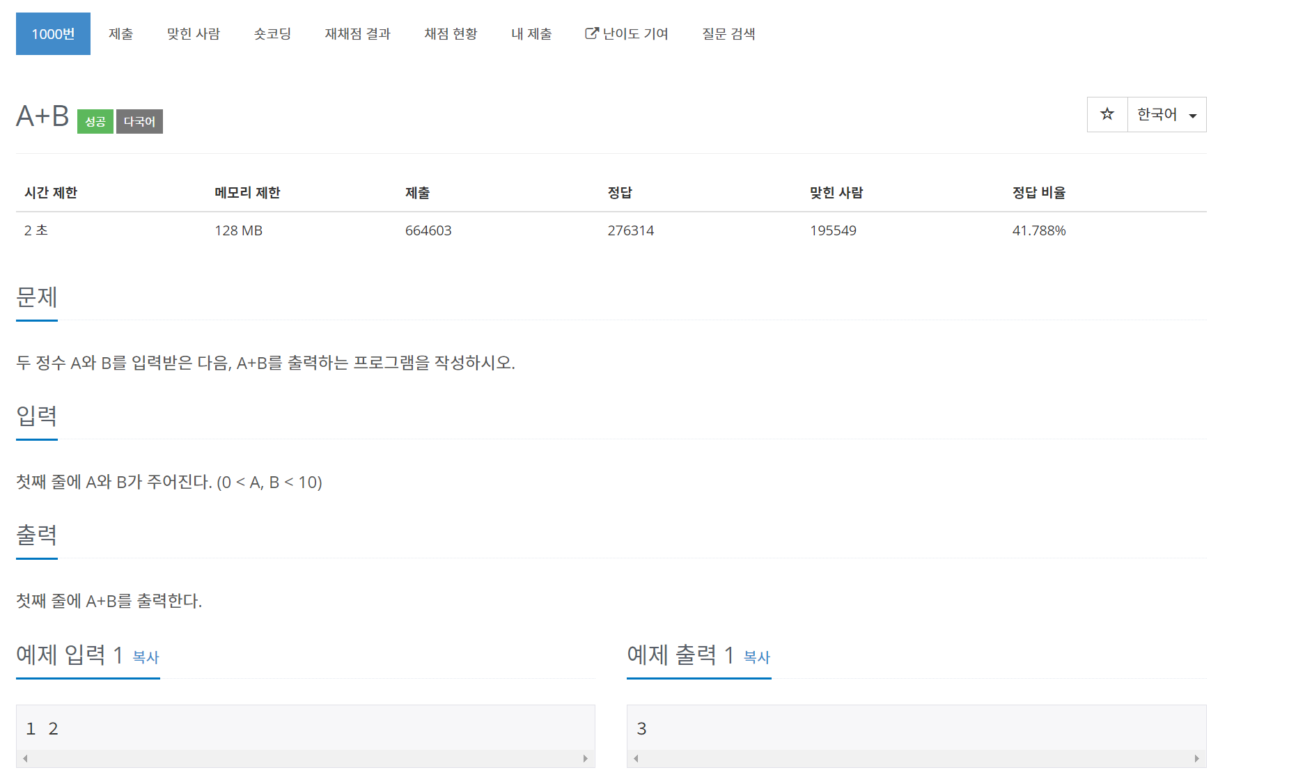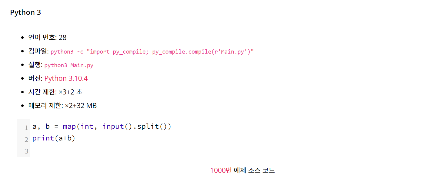 가장 처음 만나게 되는 문제가 1000번 문제입니다.