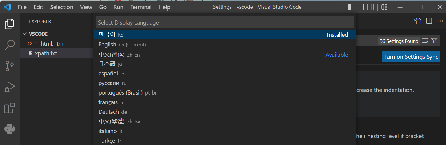 VScode를 사용하다가 영어에서 한글로 변경하거나,