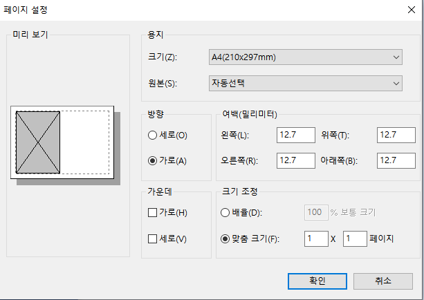 이를 통해서 알맞은 사이즈로 A4에 맞춰서 출력이 가능한데요.