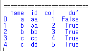 data = {'name':['a', 'b', 'b', 'c', 'c'],