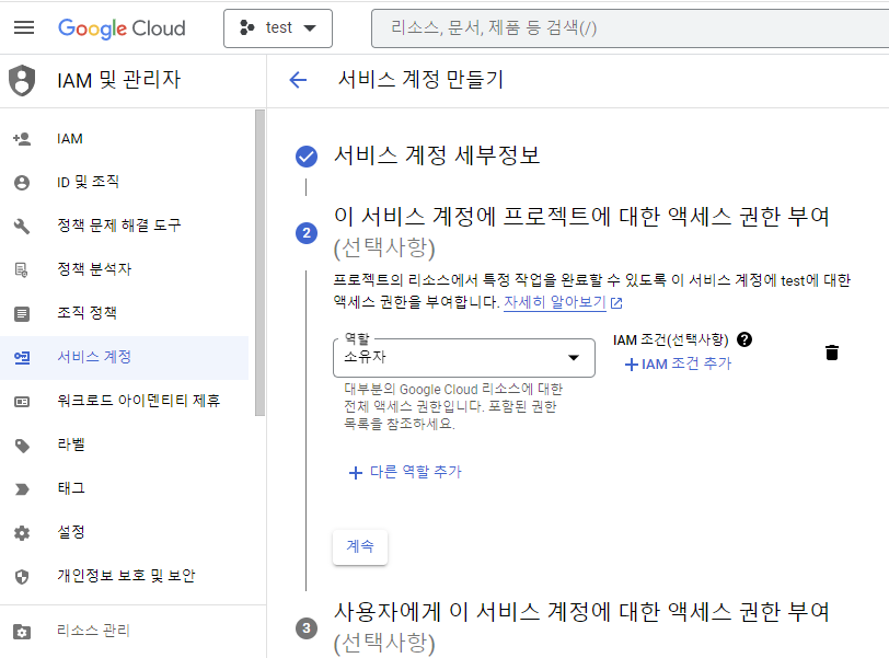 이후 추가적으로 서비스 계정도 만들어줍니다.