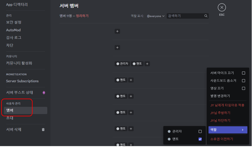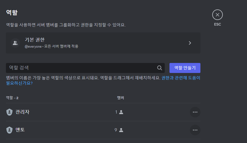 앞서 디스코드를 관리하기 위한 방법 중 간단하게 역할을 말했는데요.