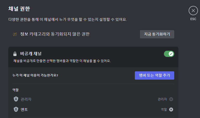 저는 멘토라는 역할을 만들어서 해당 역할에 채널 접근 권한을 주었습니다.