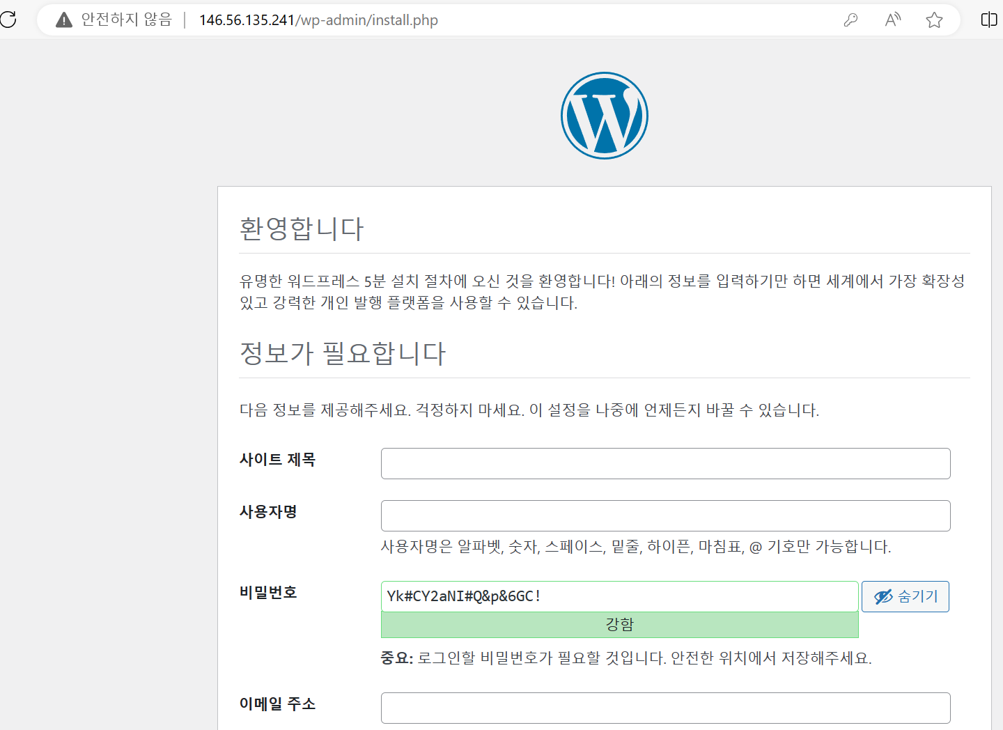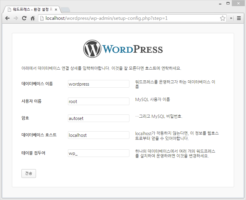 그리고 이후 wordpress 설치파일을 다른 곳에 설치하면 됩니다.