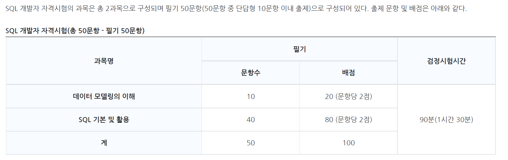SQLD 자격증이란? Kdata(한국데이터산업진흥원)에서 주관하는 시험. 공인자격 제 2013-02호에 해당하는 데이터베이스 SQL 국가공인 자격증이다. 2013년부터 민간자격증에서 국가 공인 민간자격증으로 승격되었으며, 상위 시험인 SQLP(Professional)가 존재한다. SQL(Structured Query Language)은 데이터베이스를 직접적으로 액세스할 수 있는 언어로, 데이터를 정의하고(Data Definition), 조작하며(Data Manipulation), 조작한 결과를 적용하거나 취소할 수 있고(Transaction Control), 접근권한을 제어하는(Data Control) 처리들로 구성된다. SQL 개발자의 정의 SQL 개발자(SQLD*, SQL Developer)란 데이터..
